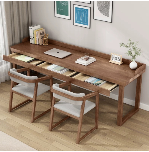 Mẫu bàn làm việc đôi với thiết kế tối giản, hiện đại, mang phong cách Bắc Âu nhẹ nhàng, phù hợp cho không gian học tập – làm việc tại nhà, văn phòng, studio hoặc thư viện cá nhân. Mặt bàn dài, rộng rãi cho 2 người sử dụng cùng lúc, tích hợp ngăn kéo tiện dụng để lưu trữ sách vở, tài liệu, laptop, phụ kiện cá nhân…