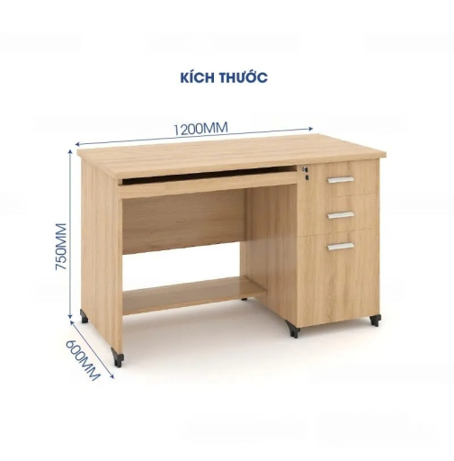 Bàn làm việc gỗ kèm ngăn kéo & kệ đỡ là lựa chọn lý tưởng cho không gian làm việc hiện đại, cần sự gọn gàng và tiện nghi. Sản phẩm được làm từ gỗ công nghiệp MDF hoặc MFC phủ Melamine có khả năng chống ẩm, chống trầy, dễ vệ sinh và bền bỉ theo thời gian. Thiết kế tích hợp ngăn kéo tiện dụng để lưu trữ tài liệu, đồ dùng cá nhân cùng kệ đỡ mở giúp đặt sách, phụ kiện công nghệ hoặc đồ trang trí ngăn nắp và khoa học. Kiểu dáng đơn giản, màu sắc trung tính dễ dàng kết hợp với nhiều phong cách nội thất, phù hợp cho cả văn phòng công ty lẫn góc làm việc tại nhà.