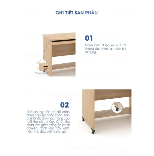 Cạnh bàn được gia công tỉ mỉ, không sắc nhọn, đảm bảo an toàn khi sử dụng. |