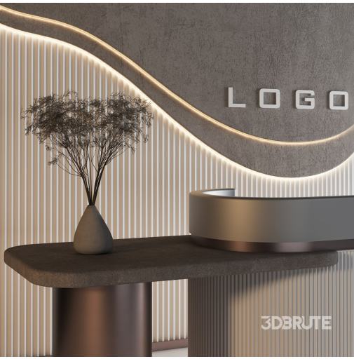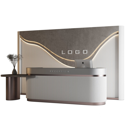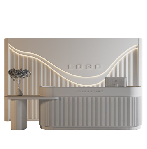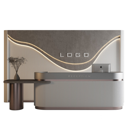 Là lựa chọn lý tưởng cho không gian đón khách hiện đại mang tính biểu tượng thương hiệu cao. Thiết kế nổi bật với các đường cong mềm mại, thân thiện thị giác, kết hợp với mặt lam sọc đứng tinh tế và điểm nhấn ánh sáng LED uốn lượn theo dạng sóng trên nền vách giả bê tông.