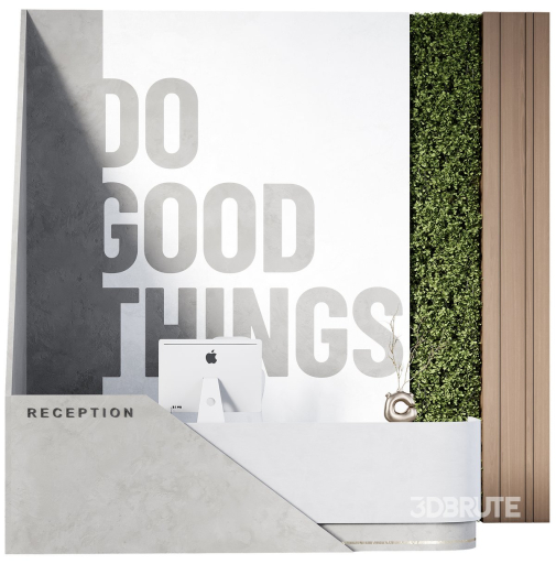 Là mẫu quầy lễ tân mang tinh thần tích cực và phong cách kiến trúc công nghiệp hiện đại, hòa trộn giữa vật liệu xi măng mộc mạc và mảng xanh sinh thái. Mang lại cảm giác năng động và truyền cảm hứng tích cực cho khách đến.