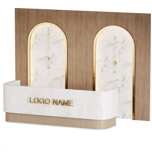 Quầy lễ tân đá vân mây là điểm nhấn hoàn hảo cho mọi không gian tiếp khách cao cấp. Thiết kế lấy cảm hứng từ sự giao thoa giữa nét cổ điển và đương đại, nổi bật với mặt quầy uốn cong mềm mại bằng đá trắng vân mây, tạo cảm giác sạch sẽ và tinh tế.